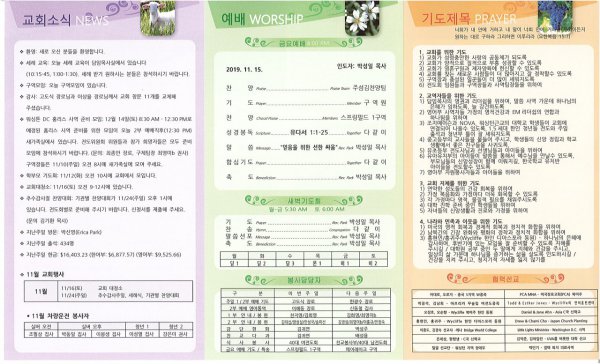 2019년 11월 10일 교회소식
